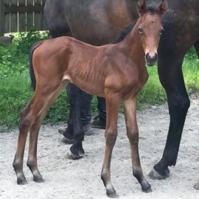 Rhyme was foaled on May 3, 2025 and is the 12th foal from our wonderful broodmare Sofia KD. "Sofie" as she is affectionately known will raise this very bright and cute young lady and will then retire with the other "old ladies" of Derby Farms to live out her days in a well deserved retirement. Rhyme is a super cute, super expressive filly who is destine to follow in the footsteps of her older syblings and make a big splash in the dressage ring. We fully expect a Premium award from this fine foal when she is presented later this summer at the GOV inspection.